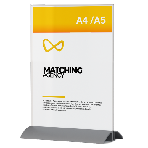 - Standard Acrylic Desk Stand: Simple and elegant, perfect for tabletop display of brochures, flyers, or business information.